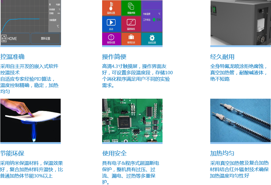 XTG5081紅外消解儀采用復合電熱絲加熱技術,升溫效率高,